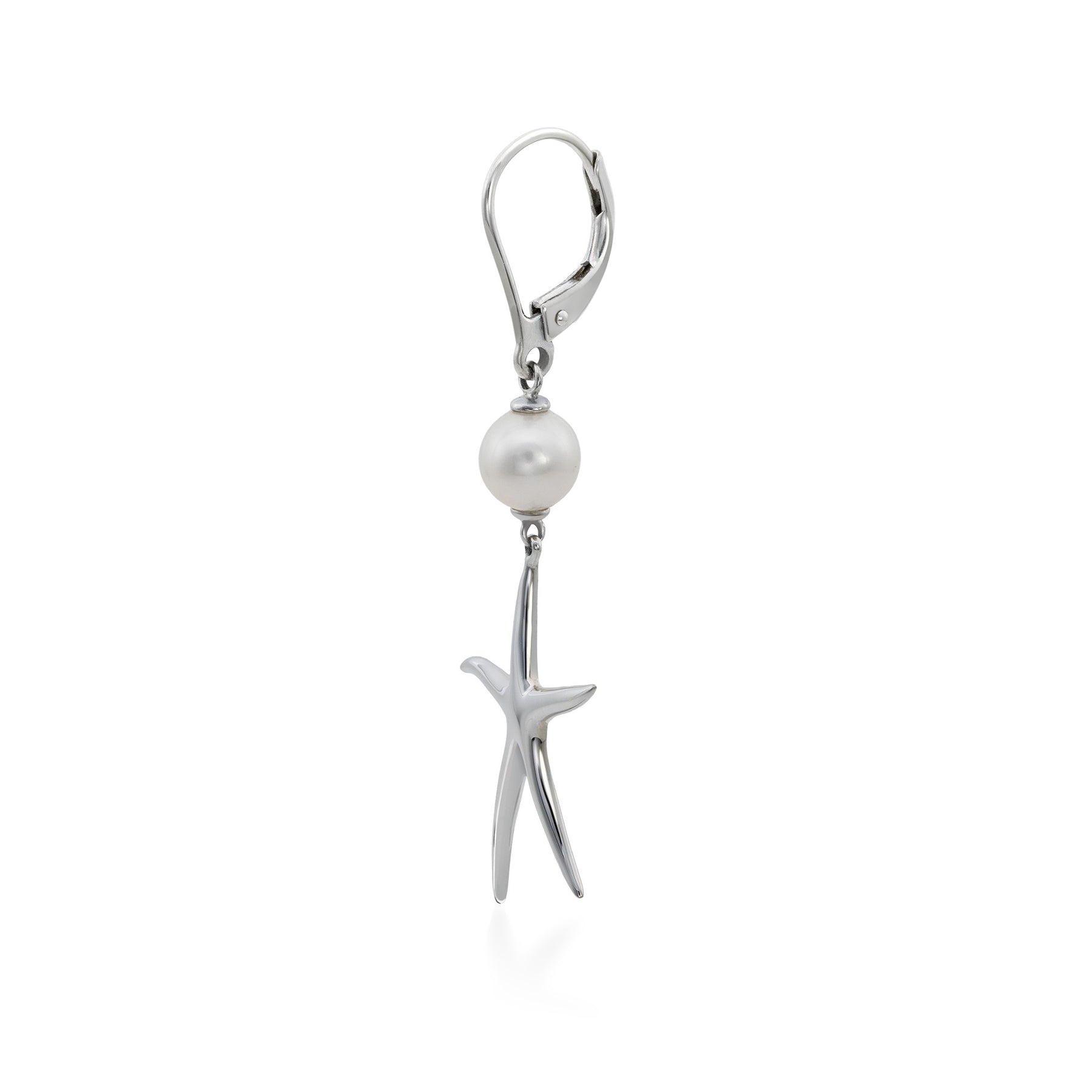 These earrings are crafted from solid, premium sterling silver, featuring graceful, elongated arms that catch the light beautifully. A lustrous 7mm cultured white freshwater pearl sits above each starfish, adding refinement and balance to the design. At 55mm in total length, these earrings make a statement without overwhelming your look. The leverback closure keeps them secure and comfortable, whether you're wearing them to an event, a weekend on the coast, or simply because they make you feel like yourself.