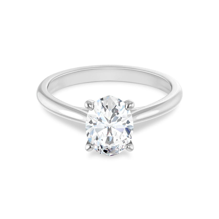 This classic oval solitaire ring features a stunning 1-carat (8mm x 6mm) lab-grown oval diamond mounted on an elegant 4-prong setting. It is made from our premium, tarnish-resistant sterling silver, which has a bright white appearance like white gold or platinum without the need for rhodium plating.
