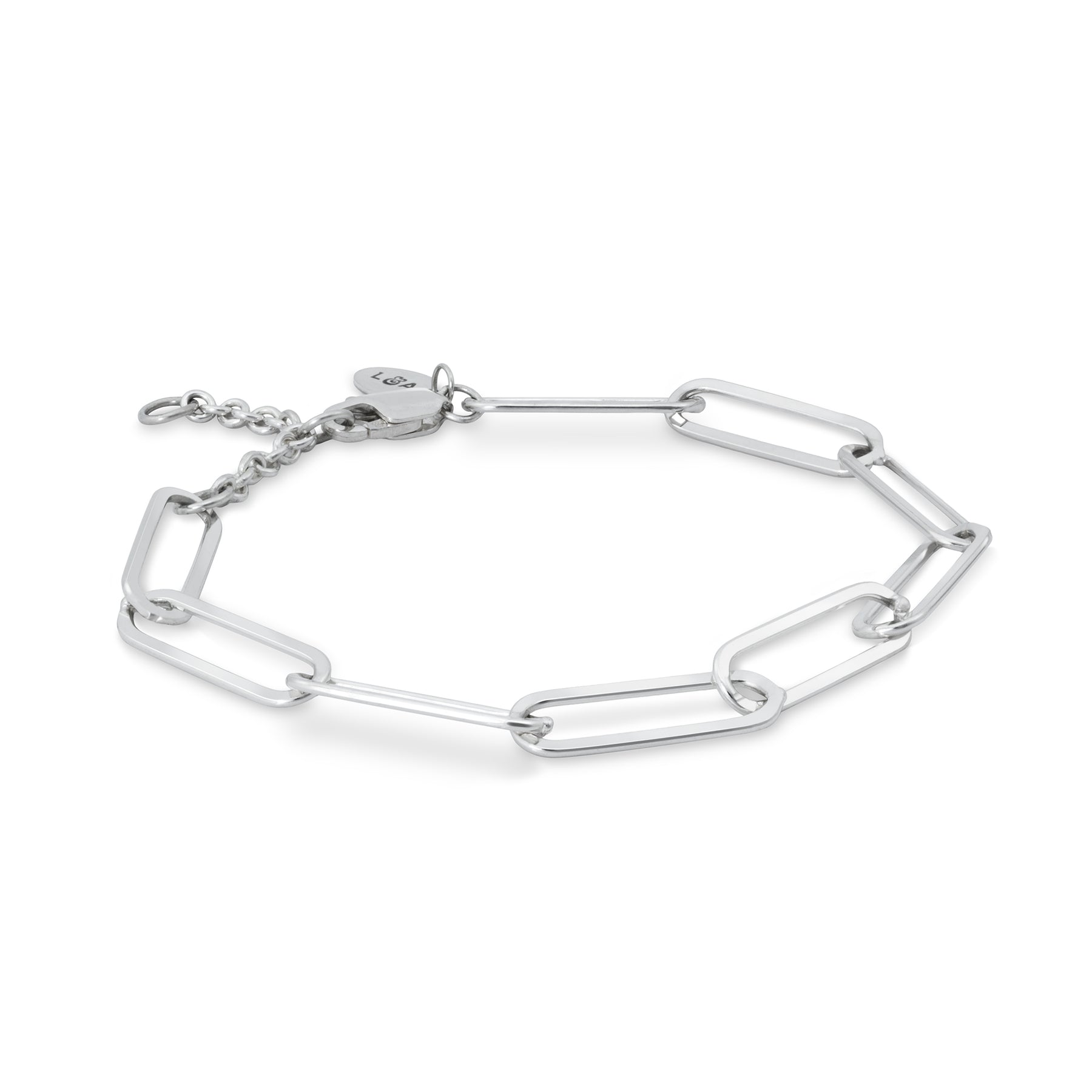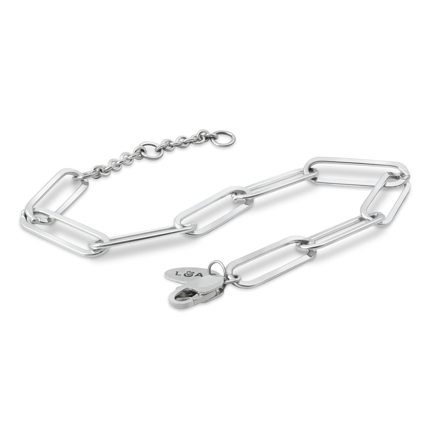 This paperclip chain bracelet in sterling silver is crafted from solid, non-plated links with an integrated extender that makes it more comfortable and versatile than typical paperclip bracelets.